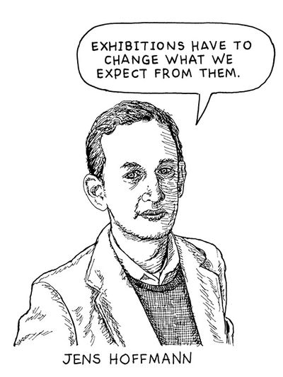 "Hoffmann's training in theater exerts a great influence on his curatorial efforts. Of key importance in his exhibitions is the staging of the experience, from the design of the installation to the catalog's conceptualization, the related programming, and the "performances" of the artworks themselves. The stage set of the exhibition space, site, or geographical location is an important factor in developing his ideas, which respond to both time and place. Hoffmann considers the larger historical and sociopolitical context in which an exhibition is happening and the relevant curatorial and art-historical relationships. A defining characteristic of Hoffmann's work is his conception of an authorial role for the curator and applying the ideas and strategies of artists (in particular Conceptual art) to his curatorial efforts. His unique approach has resulted in a highly personal exhibition history that reflects a creative development not dissimilar to that of an artist." Jessica Morgan